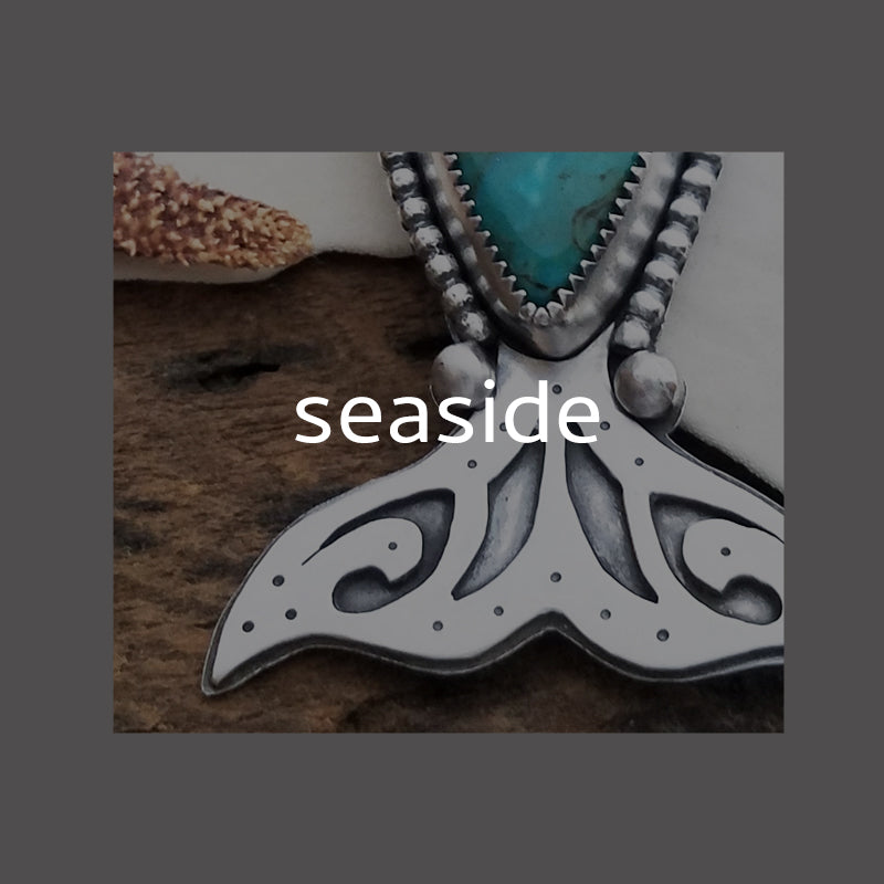 All metal is sterling silver (except fine silver bezel) that has been oxidized, tumble polished and sealed with a protective coating.