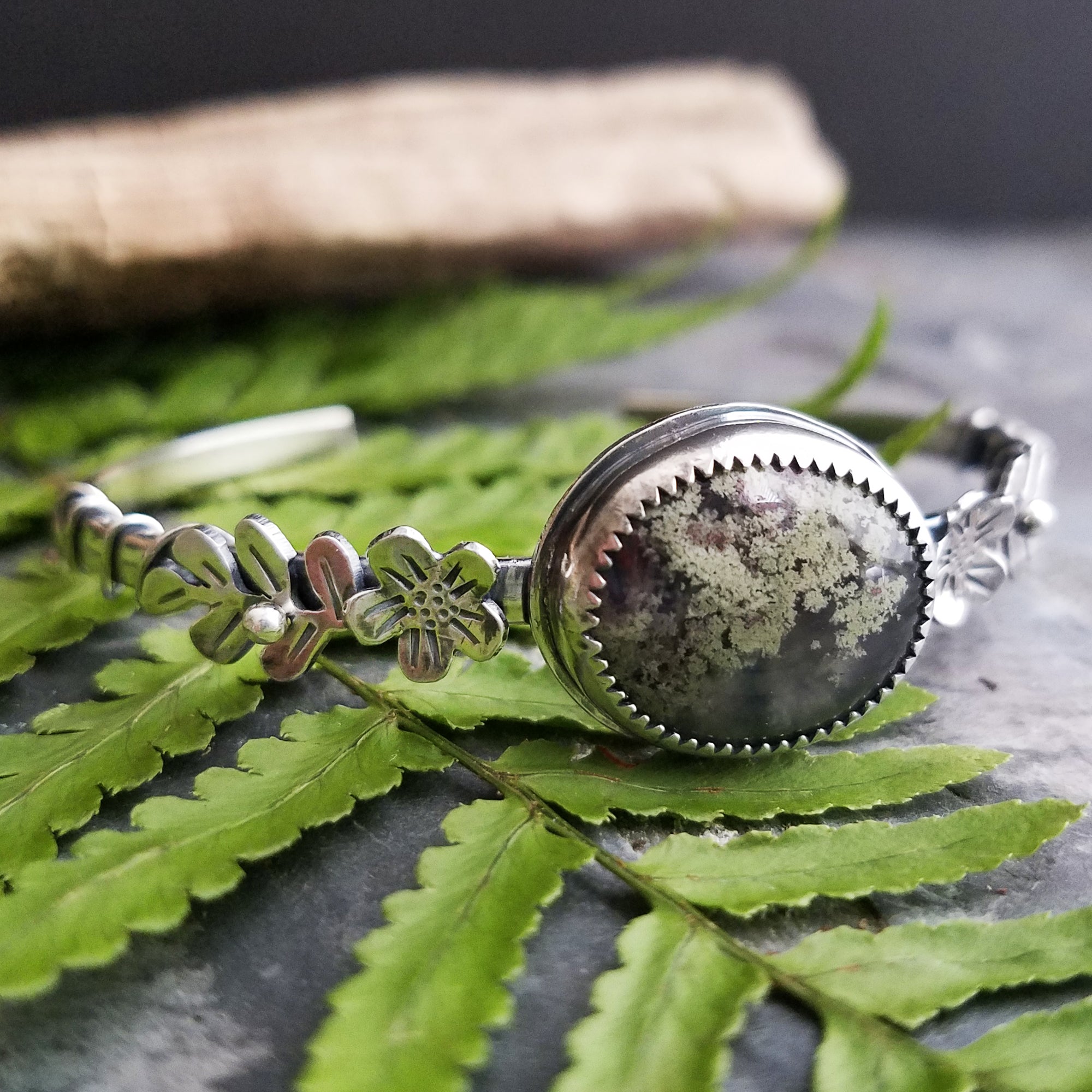 Flower Garden Indonesian Moss Agate Cuff Bracelet